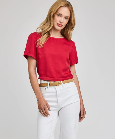 The Alessandra top is made of tencel twill fabric that has been garment dyed to achieve a dimensional look and soft feel. Features include a boat neckline and adjustable cut-out detail.