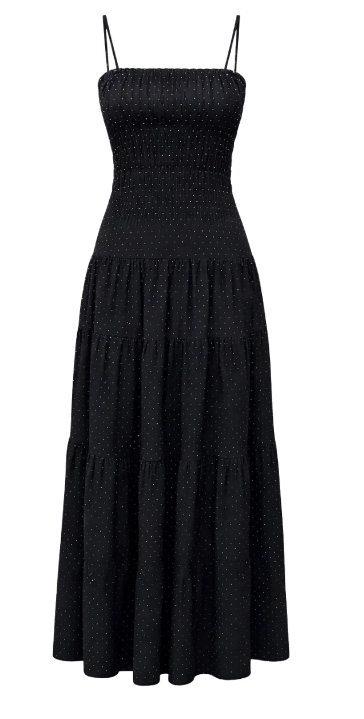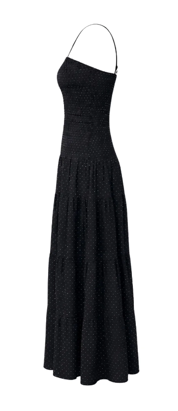 Make a statement with the Loralee Polkadot Dress, an elegant full-length dress designed to turn heads. Featuring a flowing tiered skirt and a delicate polkadot pattern, this dress combines romantic movement with timeless sophistication. Perfect for weddings, special events, or any occasion where you want to feel effortlessly chic.