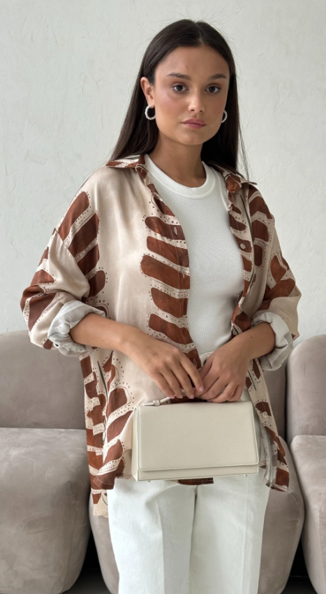 Super versatile luxe button-up shirt that takes you from day to evening. Team with a vest for an easy relaxed look or wear with higher-waisted trousers for a polished outfit.
